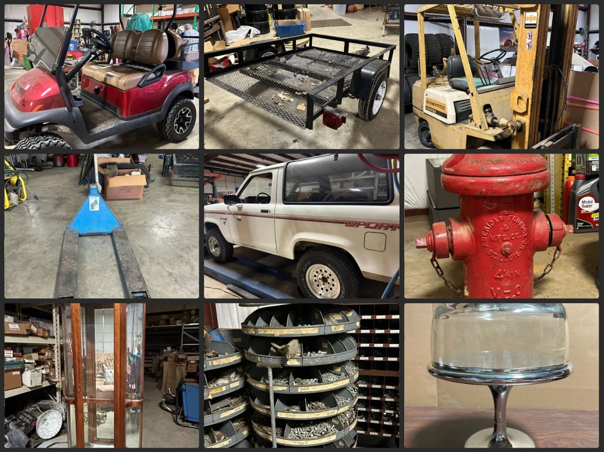Bronco II, 2020 Club Car Golf Cart, Forklift, Automotive Parts, Nice Glassware and More