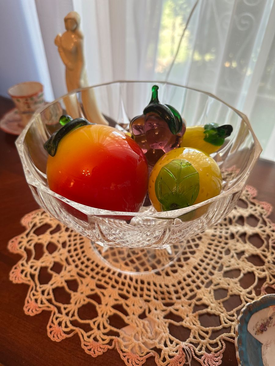 Here are a few of the items at our Shelbyville sale this week! We have Longaberger baskets and dishes, Cutco knives, lots of jewelry, hat lady vases, mid century furniture, vintage wall pockets, Kelly clown figures, cross stitched pictures, Barbie’s, French provential bedroom suite, wedgewood, Fenton, Christmas items, pocket knives, watches, depression glass, carnival glass, willow tree figures, late 1800’s ceramic dogs, wrought iron outdoor furniture, beautiful stained glass and so much more!!