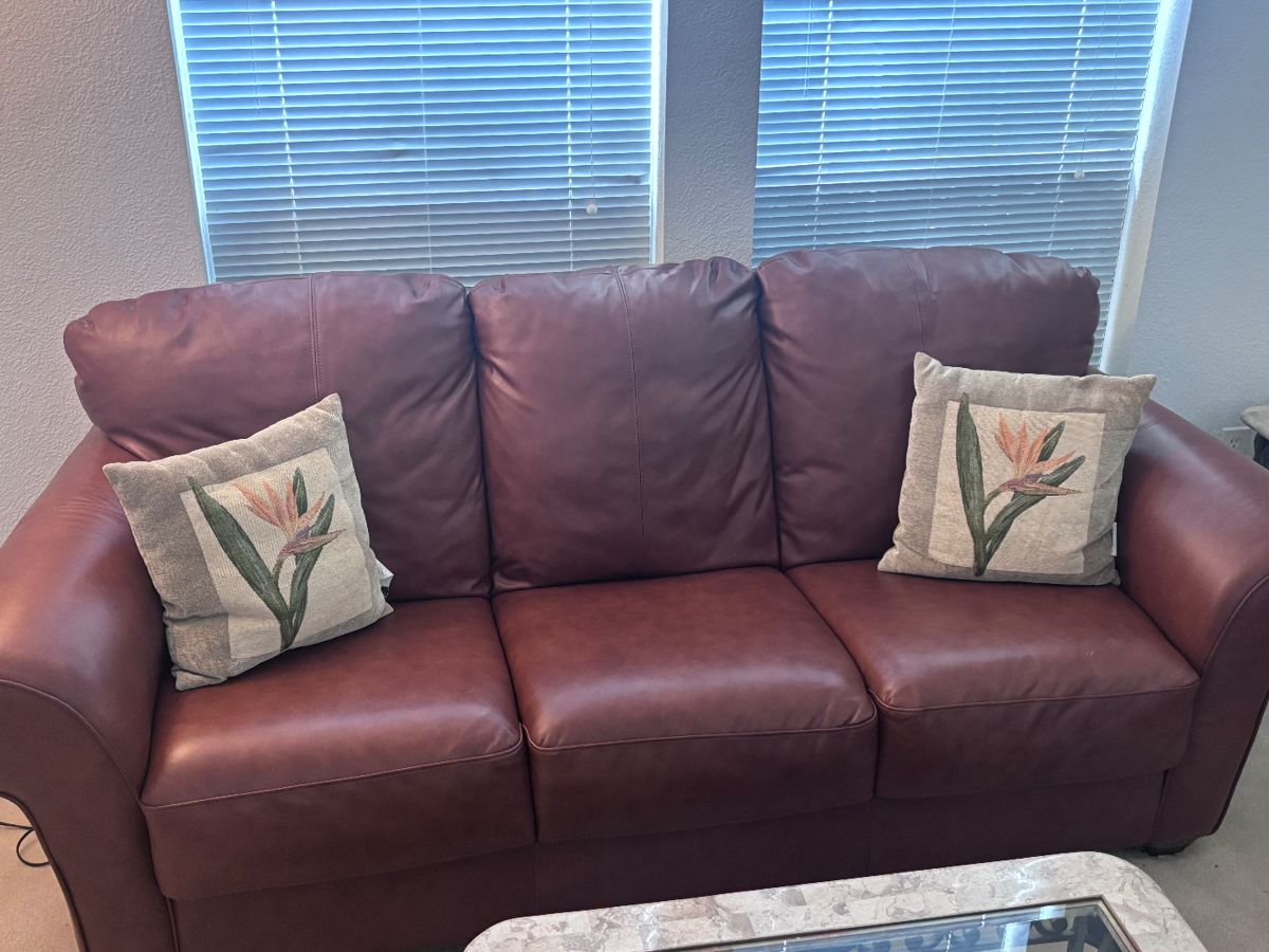 - Beautiful brown leather sofa and chair