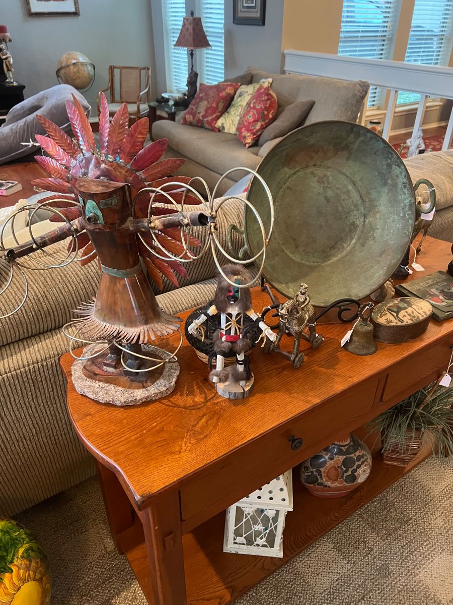Dinning set, sofa set, wicker chairs & side tables, mid century credenza, buffet by Founders, coffee table, double dresser, Sushi bar stools, barware, Castle & Schweppes and Keystone Seltzer bottles, Bellmore Beverages, Lladro figurines, Goebel reds figurines, Howard Miller mantle clock, Carton Holman art, Andrea Beloff Seaside Terrace print, Maureen Love signed art “La Madison”, Mantalbou water lilies, Virginia Fouche signed art, Mark Robert’s candle holders, Hacienda by Homer Laughlin china set, Nipon china set, Black clay Oaxaca pottery, Kohnson Bros., Fiestaware, Kitchenaid & acces., Cuissinart, Portifino blue, Mexican Telavera pottery, Sankoware, cast iron, Pyrex, FireKing, Le Cruset, Antique copper...