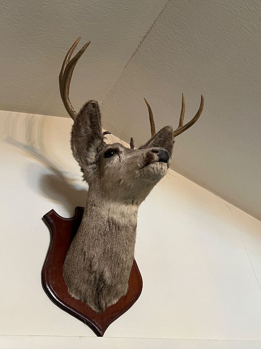 *************ESTATE SALE********************** 401 Pocano Ln. Off Pebble Beach and Westwind SATURDAY 8-2 SUNDAY 8-2 Mounted buffalo, elk, and deer heads. Three rough stick southwest coffee tables: made from old doors, lots of framed original art and prints, antique sofa with two matching chairs, stand up handicap recliner, vintage end tables, classic rocking chair, oval dining table with six chairs, lighted China Cabinet ornate wall mirrors, round kitchen table, two antique and one modern Grandfather Clocks, butchers block, large ornate antique lions foot storage chest, Queen, Ann ornate high relief stacked dresser, queen size brass bed, vintage curve front dresser, magnificent...