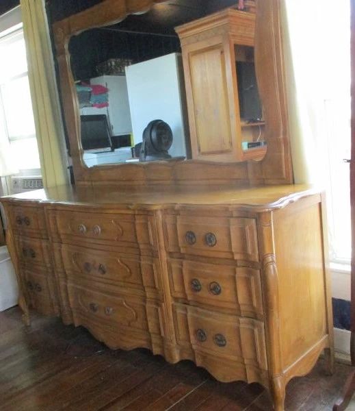 Featuring a full Dauphine French Provincial bedroom set, an antique cedar wardrobe, washer and dryer set, refrigerator, gas stove, dishwasher, rolling tool cabinet loaded with tools, assorted hand tools, horse supplies including a saddle, Marshall Pottery pieces including a nice butter churn, vintage Chinese opium bottles, cowboy hats and boots, western decor, vintage clothes, Harley Davidson accessories, jewelry with a standout detailed cameo, outdoor decor, household items, and tons more we haven't even listed yet.