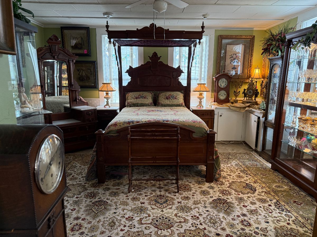 HELLO ESTATE SALE FRIENDS! CHANTAL'S PROMOTES A BEAUTIFUL MERGED ESTATE SALE IN GEORGETOWN AT OUR SHOWROOM LOCATED AT 2301 OLD AIRPORT ROAD. THIS MERGED ESTATE SALE OFFERS AN ABUNDANCE OF UNIQUE TREASURES INCLUDING EXQUISITE HOME FURNISHINGS,~ FURNITURE INCLUDING A RARE FULL SIZE AMERICAN VICTORIAN HALF TESTER WITH MATCHING MARBLE TOP DRESSER AND NIGHTSTAND, VICTORIAN SHAVING MIRROR, MIRROR FINISHED FLAME MAHOGANY TABLE WITH SIX CHAIRS AND TWO LARGE LEAVES, UNIQUE ANTIQUE DESK, SEVERAL CURIO AN CHINA CABINETS, COMFY LINEN SOFA, THOMASVILLE COFFEE TABLE AND END TABLE, LARGE TABLE WITH SIX CHAIRS AND A BENCH, NICE SELECTION OF CHAIRS, CENTURY DRESSER WITH...