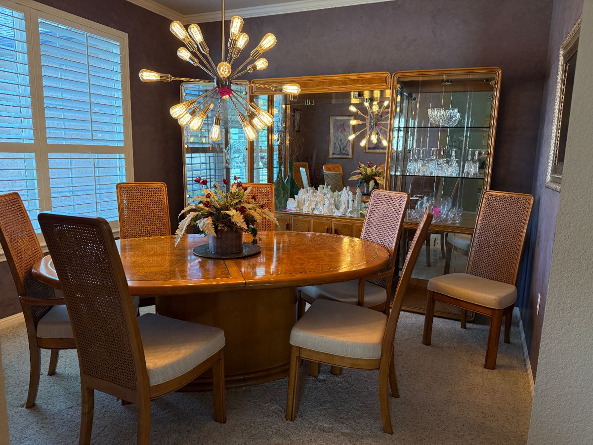 HELLO ESTATE SALE FRIENDS!!!! WE ARE PROMOTING A PRISTINE ESTATE SALE IN BEAUTIFUL SUN CITY !!!! . FOR THOSE OF YOU THAT ARE FAMILIAR WITH SUN CITY COMMUNITY STANDARDS. YOU ARE AWARE THAT YOU HAVE TO EITHER TEXT EMAIL OR CALL CHANTAL FOR THE ADDRESS. TEXTING IS PREFERRED FOR A FASTER RESPONSE !! PLEASE DO NOT BLOCK DRIVEWAYS OR MAILBOXES AND PLEASE BE CONSIDERATE OF THE WONDERFUL NEIGHBORS OF SUN CITY. WE ARE OFFERING A GORGEOUS SELECTION OF FURNITURE INCLUDING A PRISTINE MID CENTURY MODERN STYLE AMERICAN OF MARTINSVILLE TABLE EIGHT CHAIRS AND TWO LEAVES WITH AN AMAZING MATCHING LIGHTED...