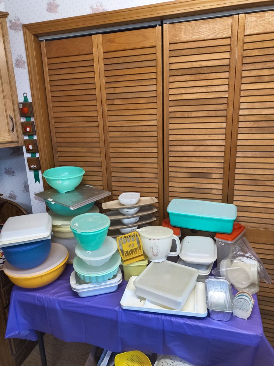 Grapevine home full of lots of treasures! Dining room table and chairs China cabinet Living room furniture Marble top table MCM wagon wheel coffee table Curio cabinet Futon King bedroom set Kitchen Items Vintage Tupperware Precious MCM China! Royal Spelndor by Fine Arts Lotus Hai by Homer Laughlin Noritake – pattern 5447 Cute MCM décor Household décor Costume Jewelry NEW Dooney and Bourke purse Nice ladies dress clothes (most size medium) Christmas décor Tools! Including Hand tools, yard tools, plumbing, and more Padded chairs Exercise equipment Patio Furniture