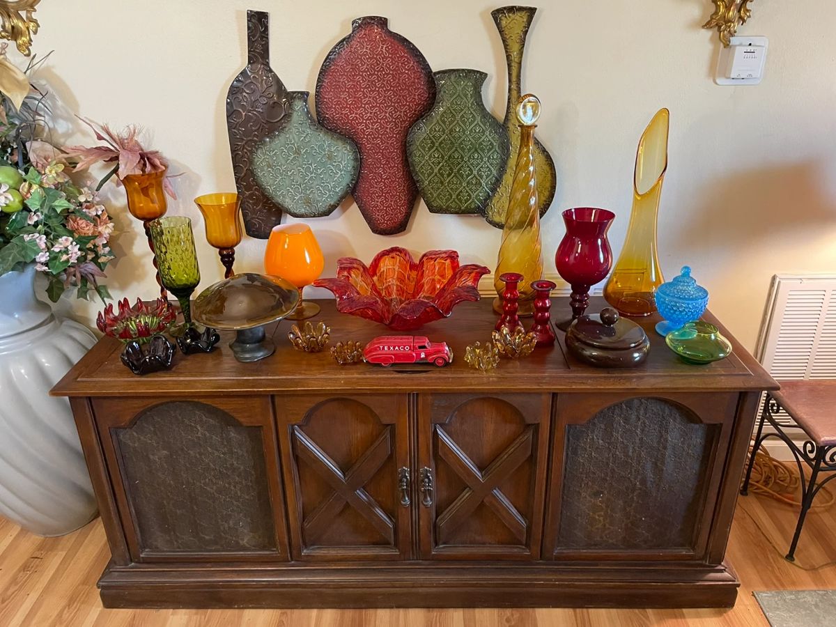 Vintage Retro Estate Sale Tons of knickknacks, vintage glassware, Murano glass, crystal, china, sconces, wall decors. Toy train collection, hundreds of Christmas village, cottages, houses, toy cars, Christmas village, nativity sets Vintage Christmas decorations Matchbox toy cars, trucks, aeroplanes, boats, vintage toys Catholic and religious items Garage full of tools, vintage wooden garden tools, hardware and supplies concrete frogs, statues, planters All furniture are priced to sell: many curio cabinets, vintage 60s stereo console in working condition, Ridgeway grandfather clock in working condition, sofas, coffee tables, Queen Anne dining table set, Inlaid mahogany china cabinet, mahogany sideboard, half moon table...
