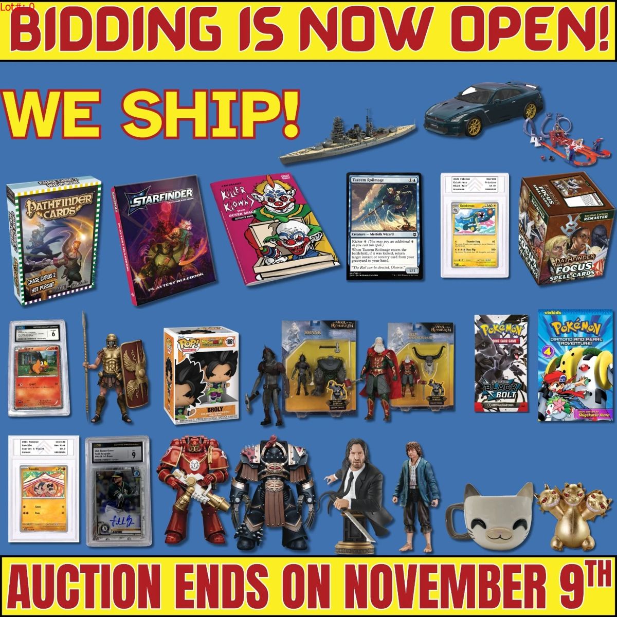 Place your bids at https://garnetgazelle.hibid.com/ bidding is open now, but be quick because the items will start closing at 11 AM Central / 12 PM Eastern on Sunday. Check out our exclusive auction packed with collectible treasures like Sports Cards, Pokémon Cards, Action Figures, Funko Pops, Plushies, Lego Sets, Toys, and more! Each week, we feature a fresh selection of unique and exciting items that are sure to catch your eye. This auction is one you don't want to miss! If you have questions please email us at support@garnetgazelle.com Buy multiple items to maximize savings as we combine items for...
