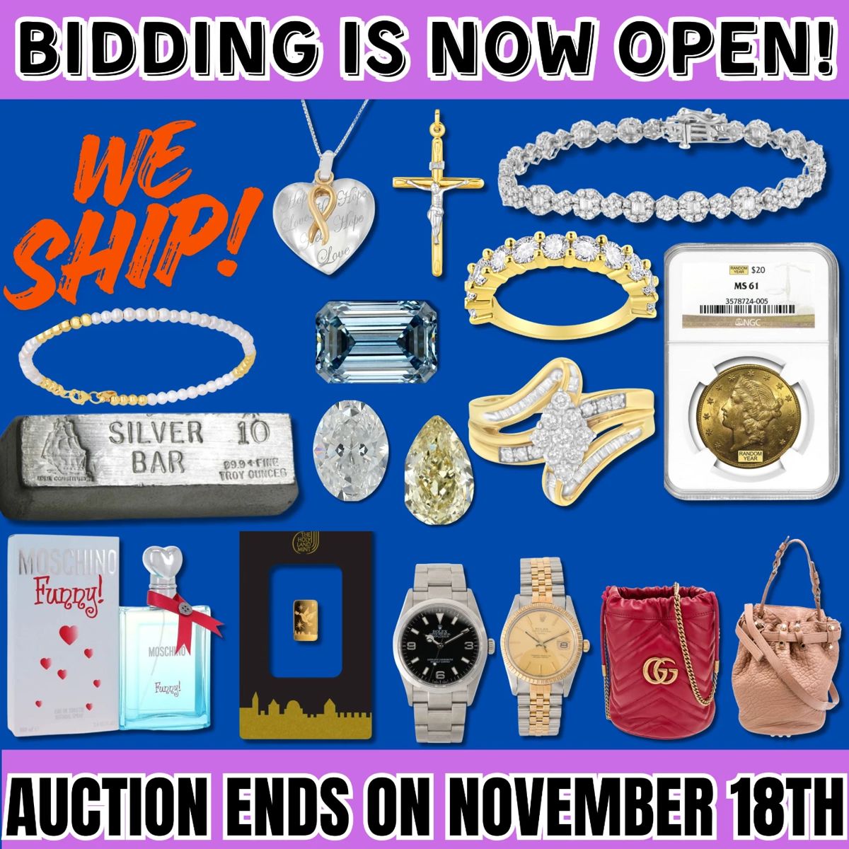 Rolex, Designer Bags, Diamonds, Jewelry, & Coins! SHIPS!