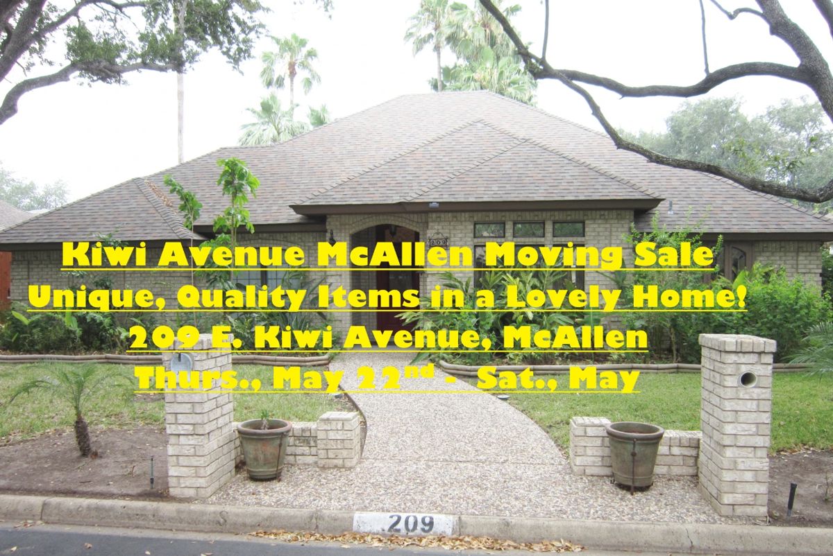 Kiwi Avenue McAllen Moving Sale Unique, Quality Items in a Lovely Home! This Kiwi Avenue McAllen moving sale is in north central McAllen, off 2nd Street/Col. Rowe. The house is clean and tidy and decorated with a lovely mix of vintage and contemporary! We have vintage furniture accent pieces, fine-quality glassware, and interesting decorative items throughout the house. We have kitchenware, quality linens, and unique art. And the garage is full too! PHOTOS WILL BE UPLOADED TUESDAY! There's something for everyone in this clean, tidy sale! CASH, CHECK AND CREDIT/DEBIT CARDS ACCEPTED (a three percent convenience fee applies to all...