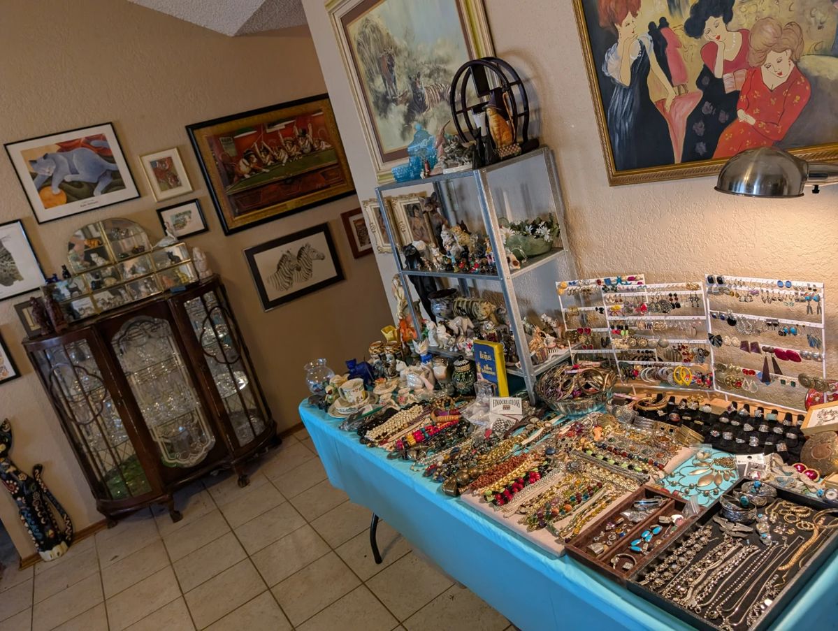 We're in North Richland Hills this week! Feline fanatics, this is your week! We've got the purrfect additions to your collection! Jewelry (Gold, Sterling, Vintage costume, Coro, Lisner, Napier, Monet, Navajo, Mexican silver) Collectibles (Vintage cat figurines, Royal Sealy china Japan, Staffordshire Crown, "Foxglove" Royal Albert, Sango, Antique Stereoscope/Viewfinder, Murano, Franklin Mint Curio Cabinet Cats Collection, Krosno, Goebel, Lenox, KPM, Uranium glass) Furniture (Art deco mirrored curio cabinet *one crack, Antique china cabinet, Italian Franco Albini 1970s bamboo rocking chair, MCM style arm chairs, Iron and glass coffee table and console table, Bookcases, Queen size iron bed, Art deco armoire,...