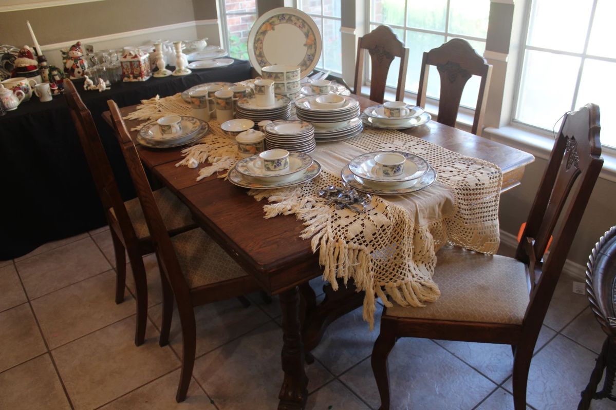 This great home is full of usable and collectable items, including... sterling silver jewelry, Coach purses, Mikasa china, cartoon character glasses, Rosenthal china, milk glass, Wagner Ware cast iron, silverplate flatware, small kitchen appliances, signed and numbered artwork: G Harvey, Larry Dyke, others,, vintage clothes, vintage toys, office items, head vase, vintage glassware, leather electric recliner, Bassett server, Ethan Allen queen bed, Ethan Allen nightstands, Ethan Allen lingerie chest, antique birds eye maple twin beds, antique birds eye maple rocker, sofa, room divider, washer/dryer, Ethan Allen desk/chair, file cabinets, antique oak dining table/chairs, antique brass beds, floor lamps, medical equipment,...