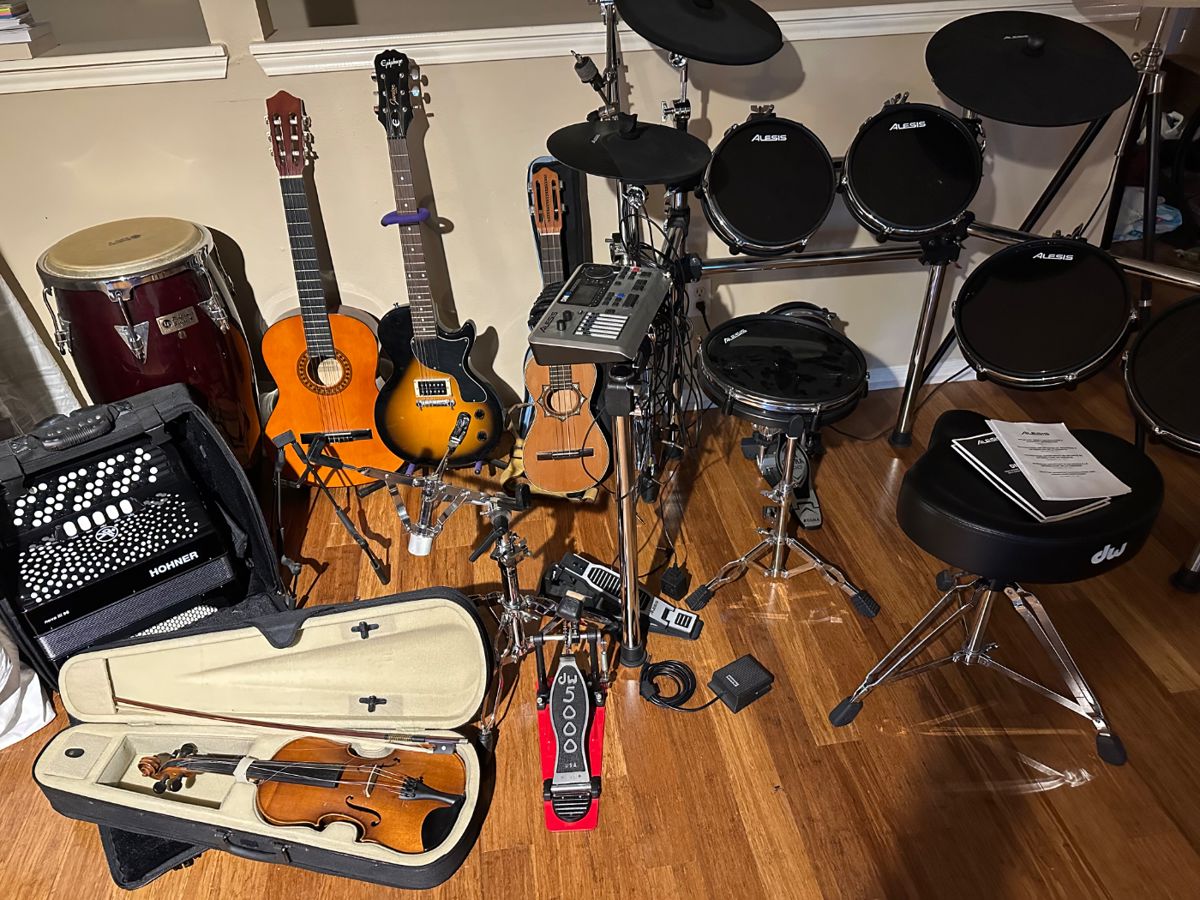 Home of an ex music producer and Microsoft Software Developer Roland KC-300, Bowers and Wilkins CM9 S2 Speakers, Electronic Drums ALESIS DM10, DW Drums Hardware, Les Paul Jr., Korg Karma Keyboard, Conga Drums, Hohner Nova III 96 Accordion, Acoustic Guitar, BOSS Dr. Sampler, Music Software Komplete, Star Wars LEGO, XGaming, Xbox Console, Video Games, Technical Books, BMC Road Racer Road Bike, Aviron Strong Series Rower, Dining Table, Breakfast Table, Leather Couch and Chairs, Handmade Furniture, Bookshelves, Kitchen Items, Trinkets, Washer and dryer, Sewing Material, More to come! We will be updating daily.,