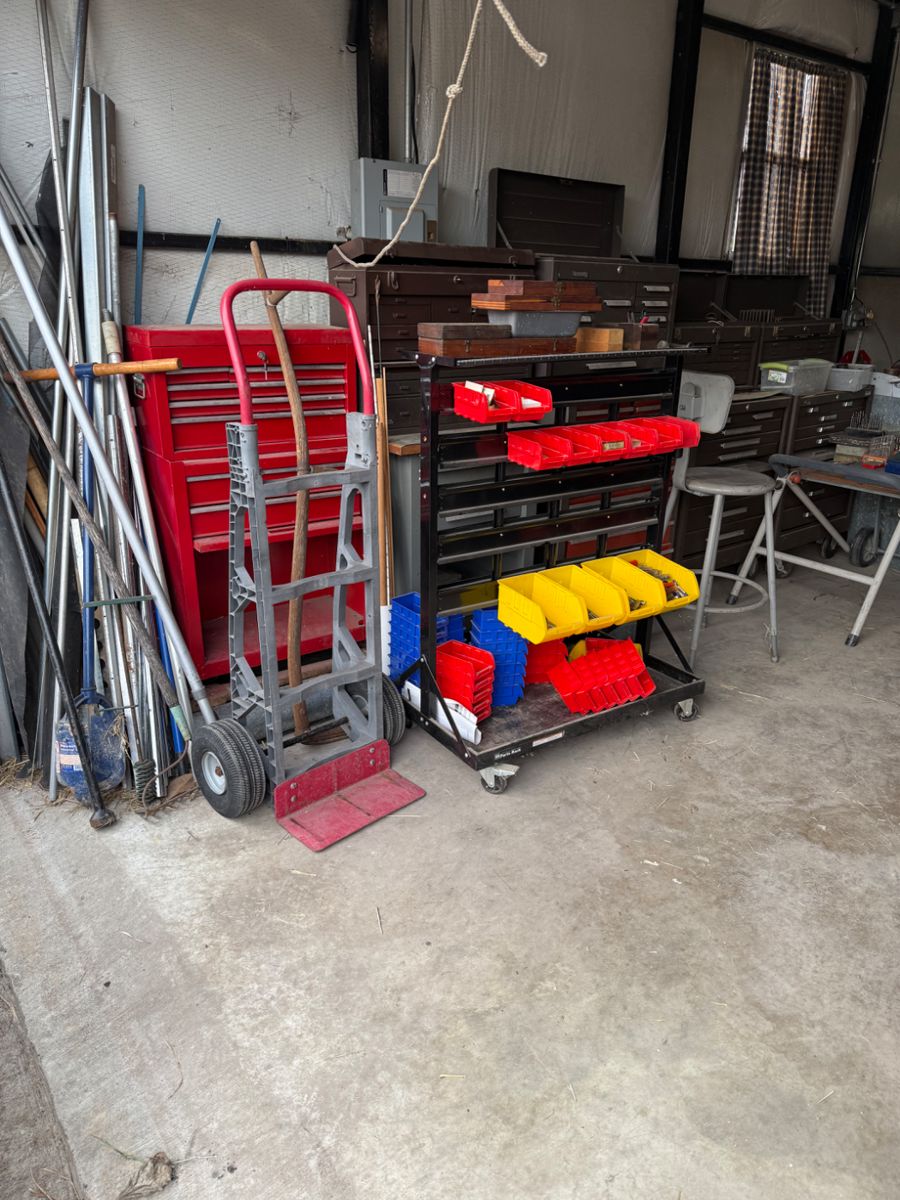 Machine Shop with tools galore. Wood working materials and tools, inside house... you will find antiques of all sorts. Instruments and China Sets. Anyone with a shop would love this.