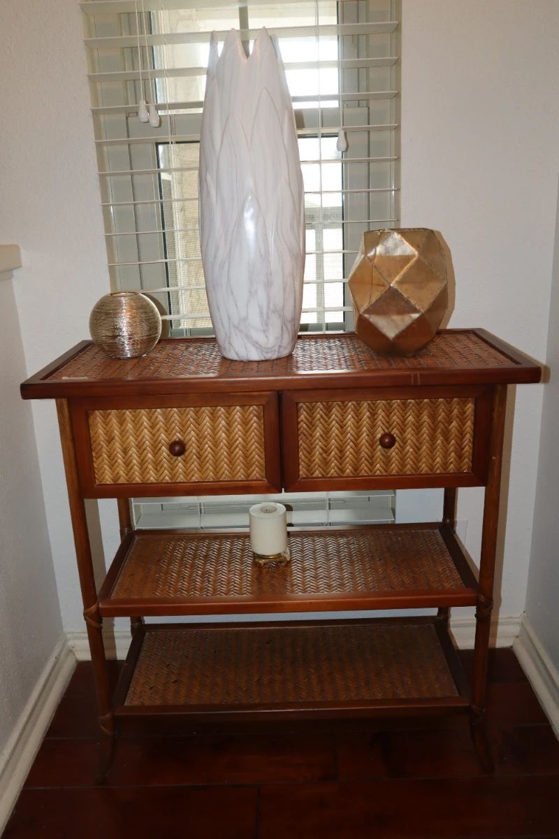 Online Sign Up: https://www.signupgenius.com/go/10C0C4DA4A72EA1FAC34-62790307-professional This immaculate home has such treasures. From you moment you walk in, a big decision will be what I should buy first! Lovely furnishings include furniture, art, kitchen, Christmas, jewelry and more! ENTRY, FAMILY ROOM and DINING: custom upholstered sofa in floral of sage, coral and green with abstract flowers on a black background, chrome sofa table, small wicker console table, weathered wood and two shelf entry table, antique dining table, set of six Parson style chairs with black floral fabric, vintage wood carved console table, black wooden shelf, Oriental table lamps, glass table lamps, silver...