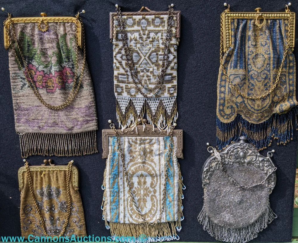 12/04/25: Incredible Collection of Vintage Purses and Handbags | Jetersville VA 23083 This Incredible Collection of Vintage Purses and Handbags presents an exceptional offering of beaded, mesh, sterling silver, cloth, leather, suede, and Bakelite-accented bags dating from the late 1800s through the mid-20th century. The catalog includes signed and regional pieces from Whiting & Davis, La Regale, Walborg (West Germany), Alpaca Germany, and Czechoslovakian makers, along with hand-crafted beaded wrist bags, drawstring reticules, metal mesh chain purses, jeweled snap-closure bags, sterling-marked compacts and coin holders, and soldered sterling mesh wrist purses. Collectors will also find faux-diamond evening bags, floral-motif mesh...