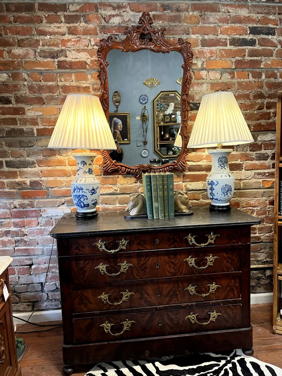 Our curated collection features a rich mix of vintage and antique furniture pieces, glassware, art, clocks, mirrors, blue and white décor, lighting, and one-of-a-kind treasures from every era.