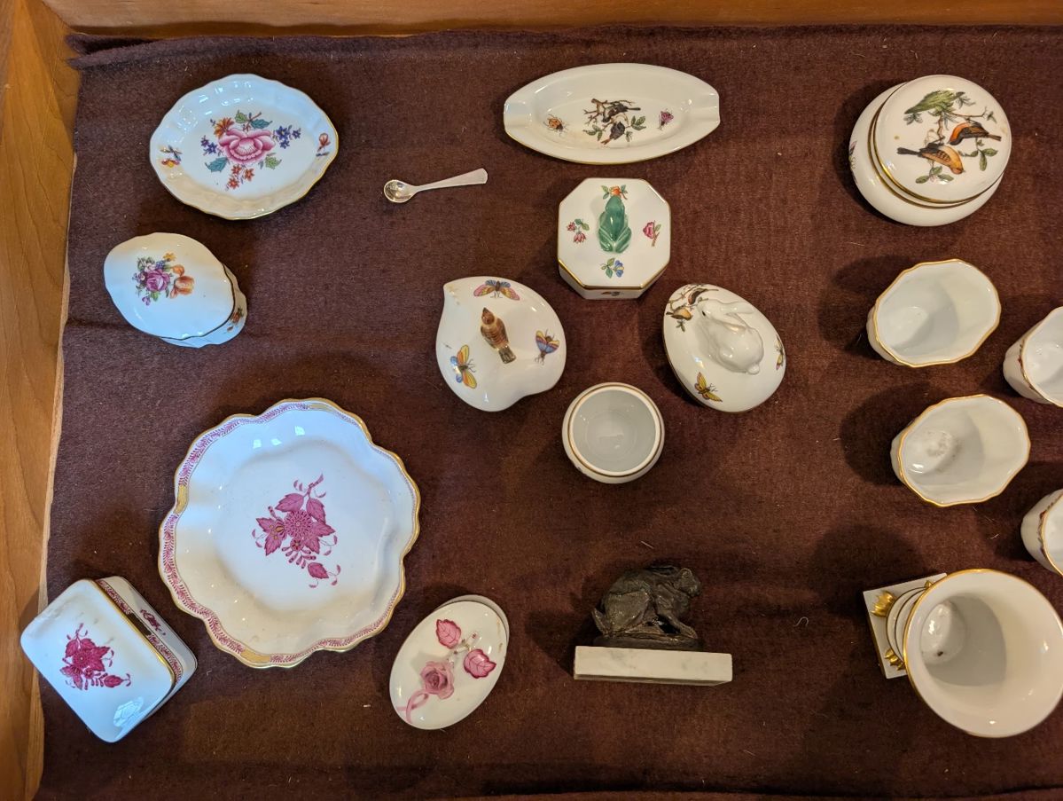 HADLEY AND ASSOCIATES ESTATE SALE SATURDAY, October 18th – 10 a.m. to 3 p.m. and SUNDAY, October 19th - 10 a.m. to 3 p.m. READY FOR RESTON??? This is an exceptional estate sale. Photos and Descriptions Say it All!!! Herend · Fishnet figurines and boxes · Rothschild Bird · Frog Prince · Count Apponyi · Chinese Bouquet, green · Chinese Bouquet, raspberry · White bunny figurines · And more…. Fitz & Floyd; Meissen; Blue Willow; Copeland Spode; Cornishware; Roemer Glasses; Haviland Christmas china made for Bailey Banks & Biddle; Villeroy and Boch; sets of china; and soooo much more…. Porcelain...