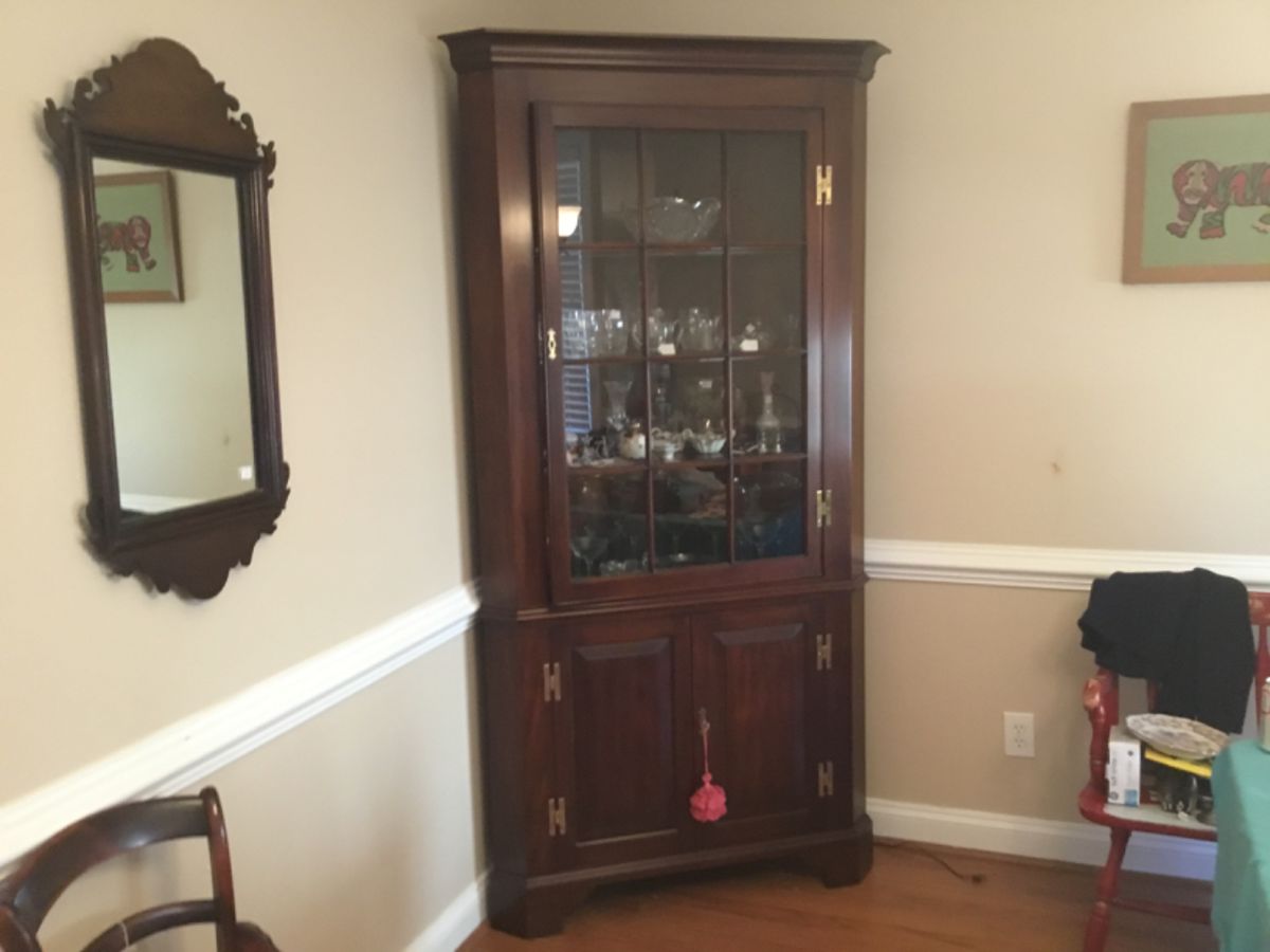 Henkel Harris Corner Cabinet, Eastlake marble top dresser, Sterling and silver plate, Herend Fishnet figures, Lenox Autumn china, Lipper and Mann Blue Danube dishes, Virginia Tech collection including football helmet, Mt Washington Crown Milano vases, Waterford Colleen, Blue and white china, Navajo Horse Hair pottery, Vintage perfumes MIB, Costume jewelry, Farm table, Lenox Brookdale china, Polish Pottery pieces, MCM brass wall decor, White wicker bed and dresser, Vintage quilts, Four Poster Bed with very nice mattress and box spring, Comforters and pillows, Bath linens, Kitchen necessities, Nancy Thomas painted items, Victorian chair, Nice ladies clothes, purses and shoes, Lenox Christmas...