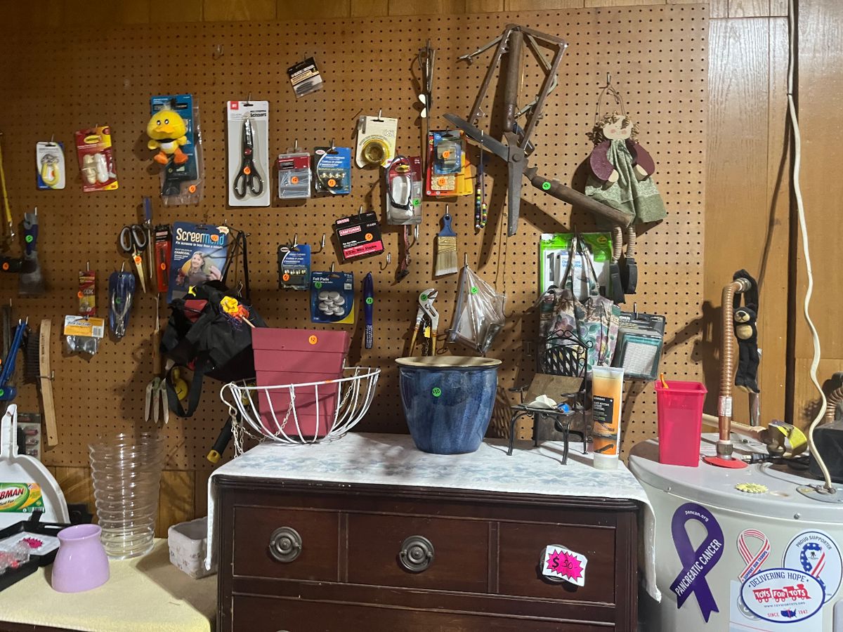 2 Full bedroom sets. Kitchen dishes glassware microwave oven microwave cart baking pans linens dining room set with six chairs China cabinet buffet Pictures Knickknacks book shelves DVDs books