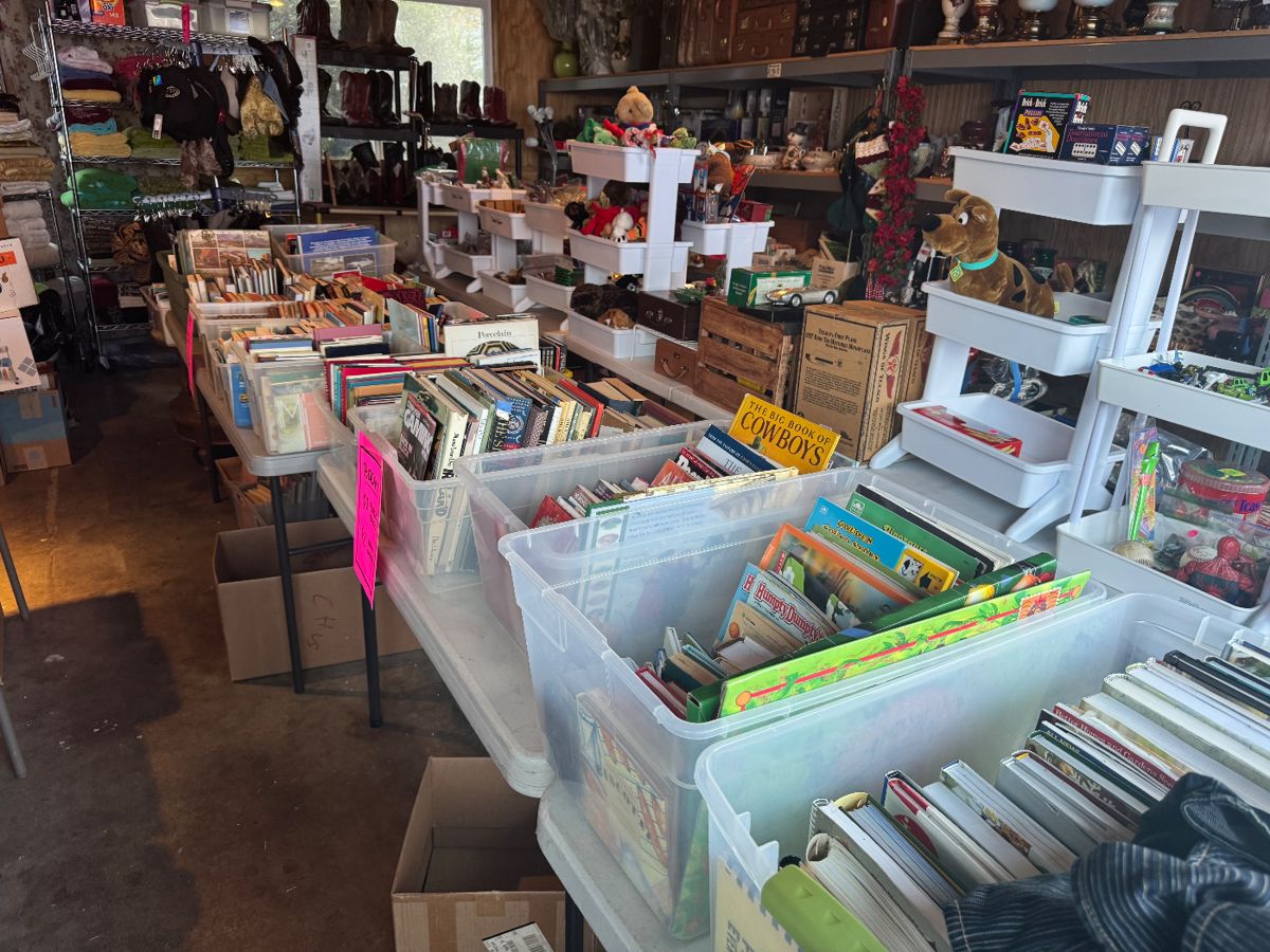 This Sale will be Monday through Sunday, This sale is a big one! It’s like walking into a department store. We have over 250 purses, over 150 wallets, and over 500 pieces of clothing (sized XL to 5X) 90% new with tags. Over 100 pair of shoes and boots, new cowboy boots some in boxes. There are toys from the 90s, video games, tons of collectibles and vintage glassware, artwork, kitchen utensils, over 300 pieces of jewelry, linens, curtains, new towels, extra large hand towels, beautiful blankets, and quilts, plus at least 50 new pillows. There are tons of knickknacks,...