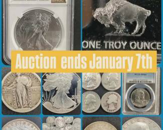SAS Silver Bars, Silver Dollars, Ridgeway Clock Online Auction