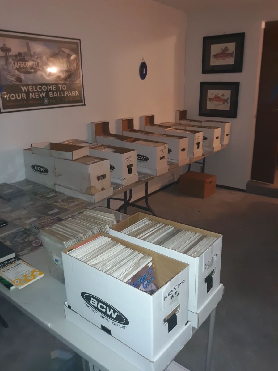 Only weekend for this huge sale. Over 3000 comics priced at 2 for $1. Will consider offers on larger lots. Tons of sports cards. Unopened boxes and singles. Bunch of other sports stuff as well. Small collection old Boxing Wrestling magazines. Think Clay Liston Johnson. Cool Labbats light up sign. Playboy collection along with others. We have added a few hundred LP records. Along with lots of gardening books. 2 story rabbit hutch. New in box lighting and plumbing fixtures from past remodels unused. Weather permitting there will be some larger items outside. Cabinets range hood sinks most new in...