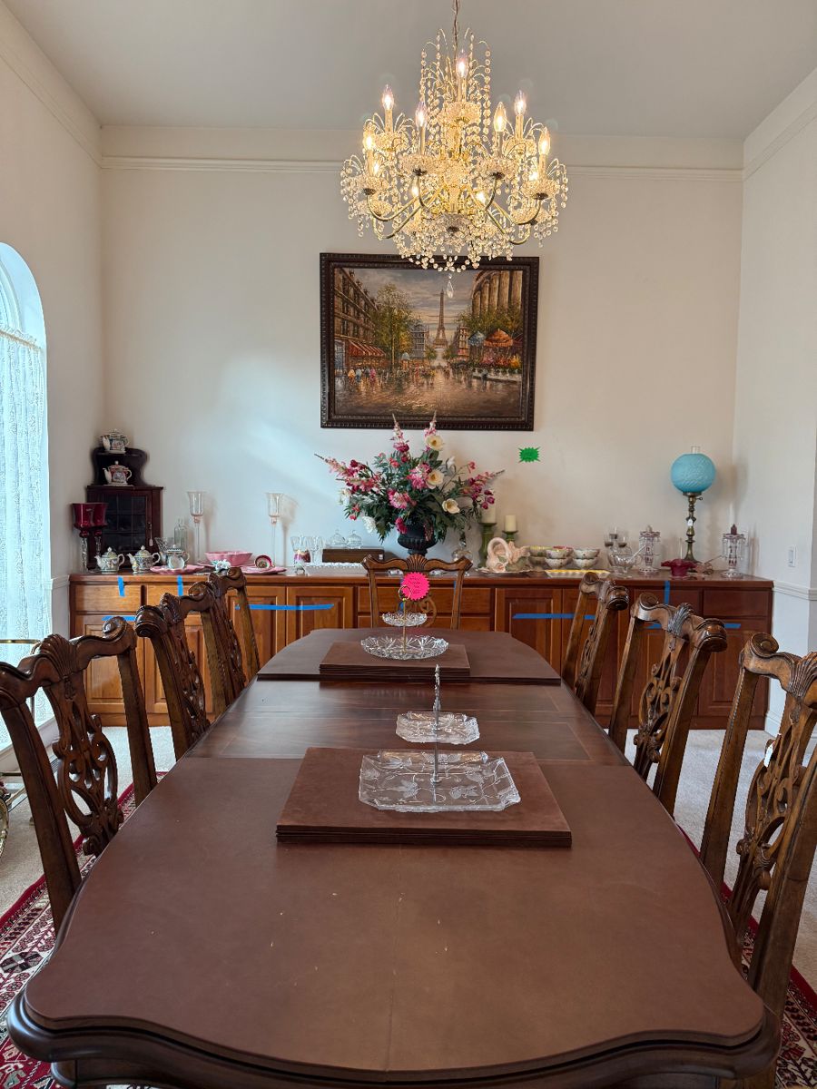 Large formal dinette at perfect for family! living room sofa and love seat oil paintings antique settee living room set, gorgeous upholstery. Jewelry Closets all packed with clothing, shoes, ties, belts, scarves. Antique tapestries collector dolls antique baby buggy’s (strollers) Eastlake baby cradle mid century desks and wall units (downstairs) air hockey table mid century desks and hutch in the garage wreaths (garage) lots of table cloths, many are new! stemware seasonal decor several large and small picture frames (Nice!) bakeware pantry items library filled with books, from modern to antique lots of French books french inspired decor Towels bedding...