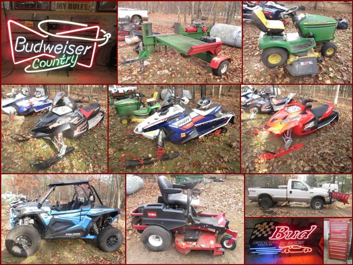 BRAUN PERSONAL PROPERTY ONLINE ONLY AUCTION Located at 29777 S. Nicaboyne Lake Rd Danbury, WI 54830. From Webster, take Hwy 35 north to County Rd A. Then head 15 miles east to County Rd H. Turn left and head 3.5-miles north to Nicaboyne Lake Rd. Turn right, then turn right onto S. Nicaboyne Lake Rd to address. STARTS ENDING THURSDAY, NOVEMBER 20th @ 6:30PM OPEN HOUSES: Monday, November 17th from 3-5pm & Thursday, November 20th from 3-5pm TRUCK, UTV, SNOWMOBILES : 2002 Ford F250 XLT 4x4 plow truck• 2019 Polaris Razor XP1000 UTV• 2006 Polaris Fusion Liberty 700 snowmobile• 2005...