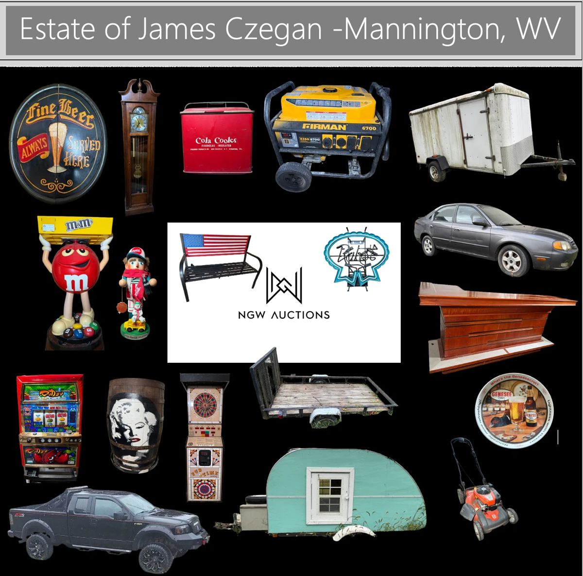 NGW Auctions is proud to present the Estate of James Czegan - diverse collection of quality items spanning household, tools, vehicles, collectibles, and more. Vehicles & Trailers 2006 Ford F-150 FX4, 2003 Kia Spectra, 1989 Ford Box Truck (no key), 1998 Cadillac DeVille (no title), 2001 8ft Trailer, Haulmark Box Trailer (no title), Handcrafted Pull-Behind Camper, Tools & Equipment Selection of Refrigerators & Freezers, Craftsman & DeWalt Tools, Porter Cable 10” Jobsite Table Saw, Firman Generator, Graco Paint Sprayer, Husqvarna Push Mower, Ladders & Scaffolding, Outdoor & Recreation Pit Boss Wood Pellet Grill, Outdoor Patio Furniture, Whiskey Barrels, Furniture &...